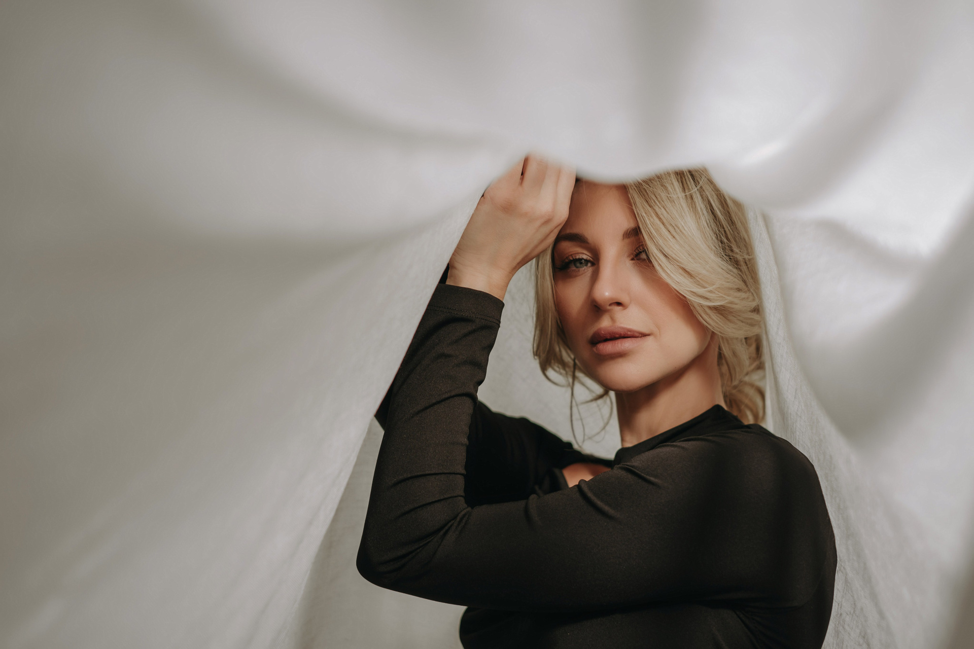 Эта съёмка — медитация в движении. Это про нежность и спокойствие, которые живут не в статичной позе, а в каждом естественном кадре. Про внутреннюю уверенность и лёгкость, которые читаются в умиротворённых глазах и мягкой улыбке модели.
